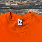 このパターンは70.80年代ごろのラッセルのダブルフェイスのフーディタイプが人気が高くよく見かけますが、こちらは年代は浅めですが使いやすいスウェットタイプでその分お手頃価格でご用意しています。