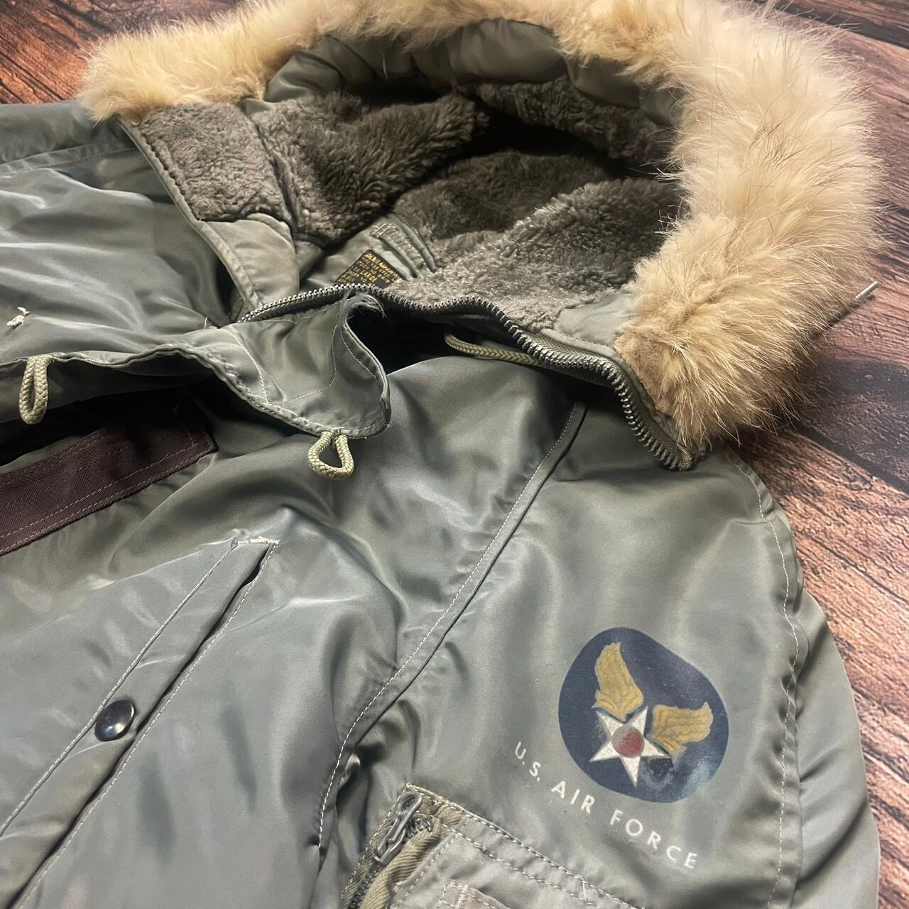 エアフォースマークの圧倒的な濃さ、コヨーテファーのコンディション、サイズ、何を取っても最高な1着。